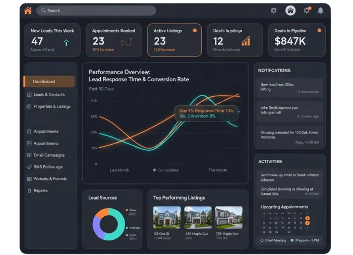 Most agents see immediate benefits from automated follow-up alone—no more missed leads or forgotten follow-ups. Within the first 30 days, you'll have a cleaner pipeline, better organization, and more consistent communication with your leads. Long-term, agents typically report closing 20-40% more deals within 6 months due to improved lead management and follow-up consistency. Remember, the platform pays for itself after just one extra closing.